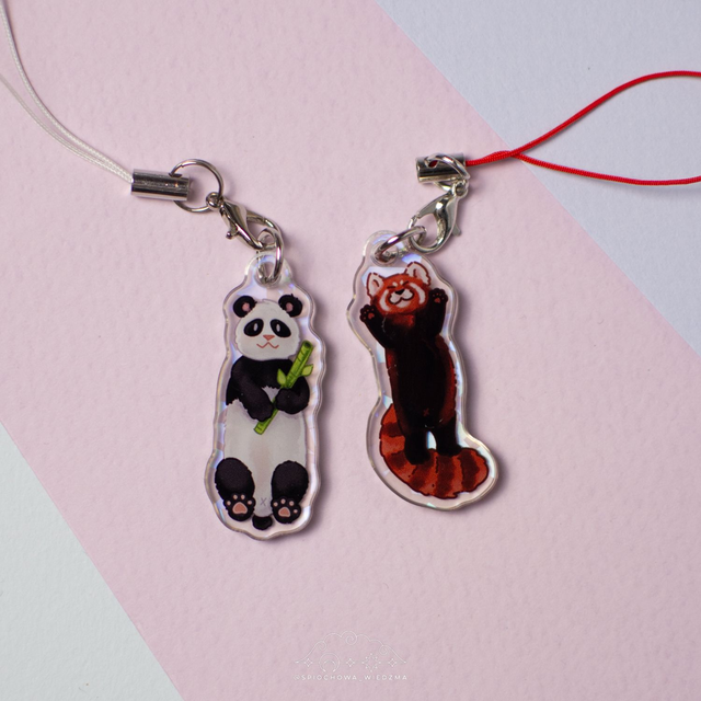 ☆ Brelok do telefonu akrylowy panda czerwona ☆